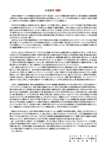 【2025JTSU春闘】妥結にあたっての中央本部見解~“すべての仲間”の総力で“過去最高のベア”を引き出した到達点を確認し、あらゆる不法行為を許さず“安全第一”“真の笑顔と活気あふれる職場”の創造に向けて起ち上がろう~